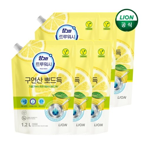 참그린 구연산 뽀드득 주방세제 레몬향 1.2L 리필 x 6개