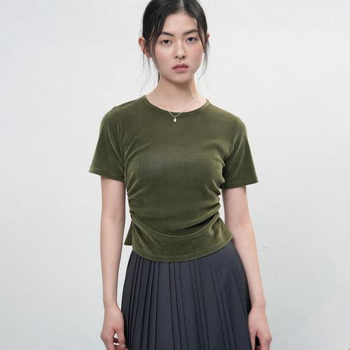 [제너럴아이디어]WOMAN 벨벳 셔링 반팔 티셔츠 [KHAKI] / WBE3L01504
