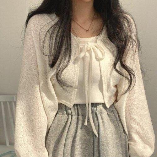[페리엠]여리여리 러블리 무드 리본 제리크롭니트가디건