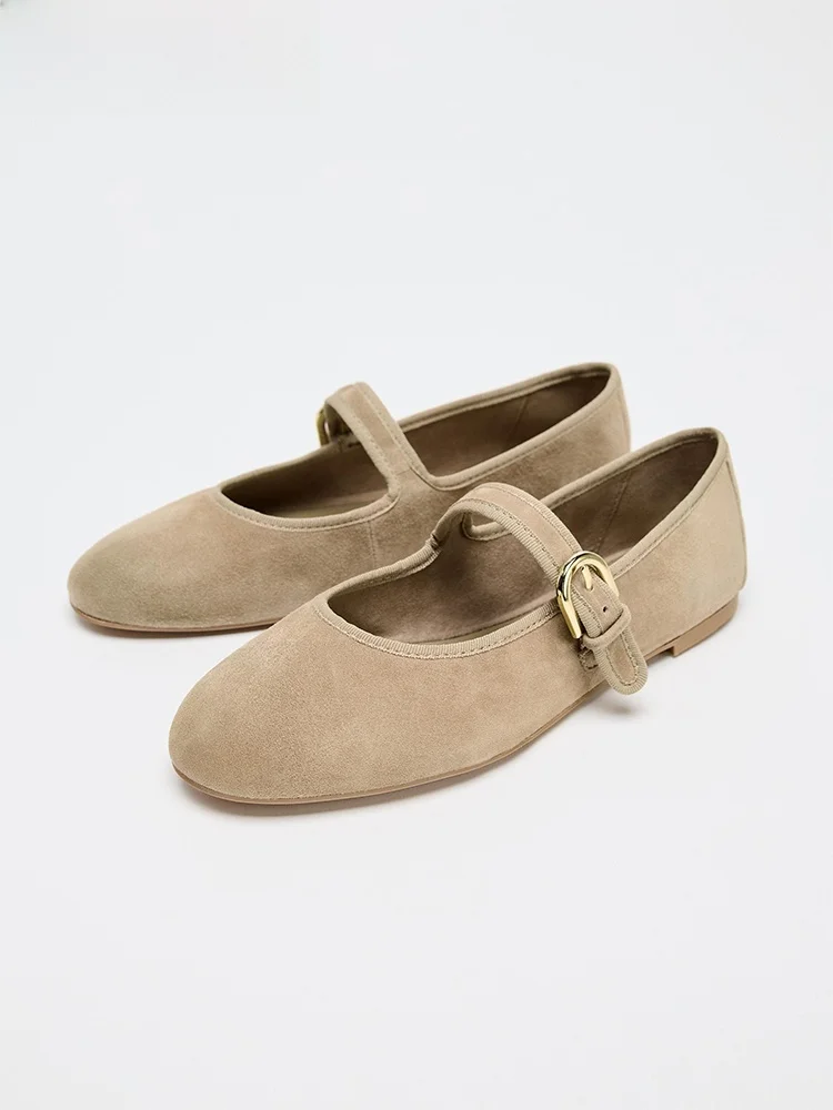 AIYUQI 메리 제인 신발 여성 정품 가죽 2025 새로운 스냅 발레 신발 여성 스퀘어 발가락 플랫 소 가죽 숙녀 신발