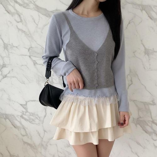 [신상오픈런]레이어드 레이스 미니 스커트 여성 뷔스티에 (32331397)