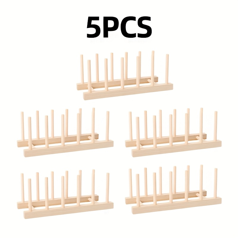 TEMU 5개 접시 받침대, 식기 보관용 나무 그릇 및 접시 물기 제거 랙, 접시, 냄비 뚜껑, 도마, 컵을 위한 수직식 건조 랙, 캐비닛 및 주방 조리대 정리용으로 설계됨, 그릇 및 식기 건조 랙
