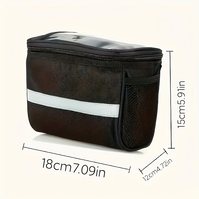 TEMU 대용량 접이식 자전거 앞 바구니 - 튼튼한 투명 포켓, 조절 가능한 핸들바 마운트, 야간 라이딩을 위한 반사 안전 스트립, 스마트폰 및 출퇴근 호환 - 도시, 캠퍼스용 자전거 랙 부착