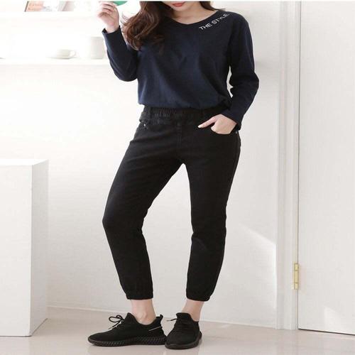 [셀럽하우스]진청 USAJ3426 데님 밴딩 여자 조거팬츠 스판바지 데일리룩