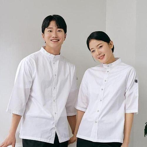 [에이치플러스몰]화이트 스탠딩카라 7부조리복 쉐프웨어 셰프복 위생복