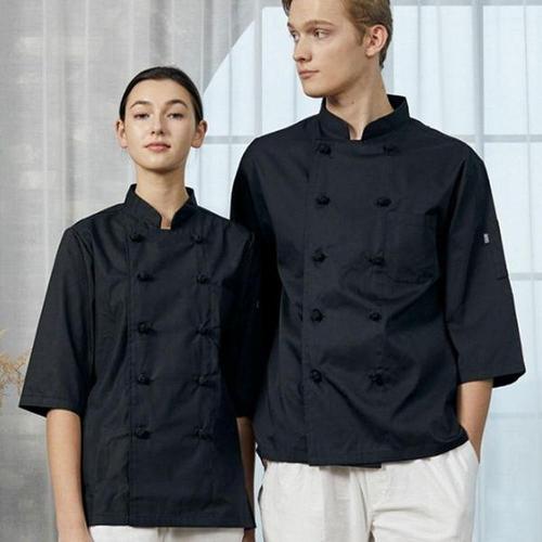 [XB3I7695]반팔 더블 단추 주방 요리 쉐프 조리복 블랙
