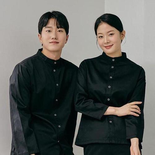 [에이치플러스몰]블랙 셔츠형 조리복 쉐프웨어 셰프복 유니폼 주방가운