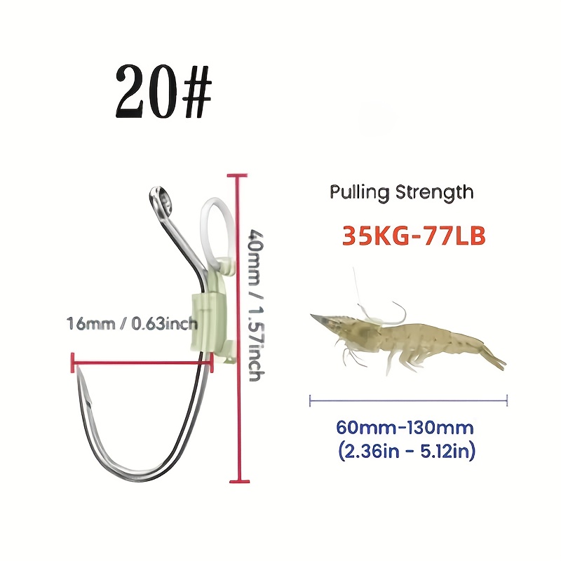 TEMU 20개 발광 생새우 낚시바늘 - 신형 낚시용품, 고탄소강 스위블 스냅, 담수 및 해수용
