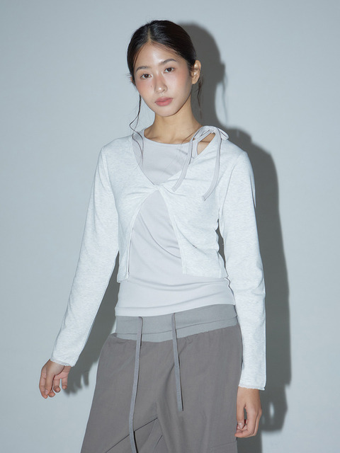 [디어스토커] 조안나 트위스티드 리본 롱슬리브 티 - 라이트 그레이