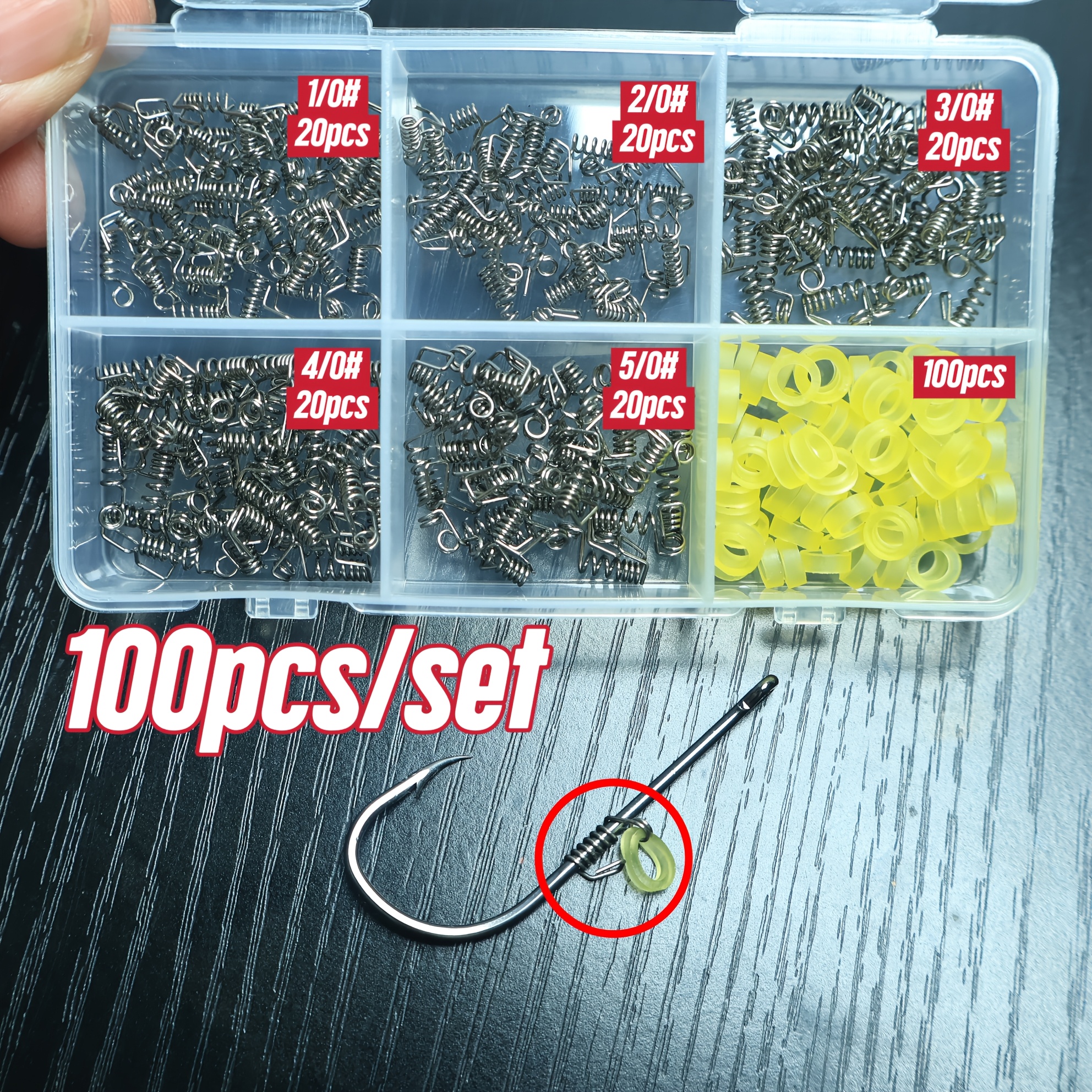 TEMU 100개/세트 새우 후크 스프링 고무 밴드 새우 뒷꿈치 후크 추가 스프링 클립 암초 낚시 배 낚시 루어 그루퍼 새우 낚시 장비