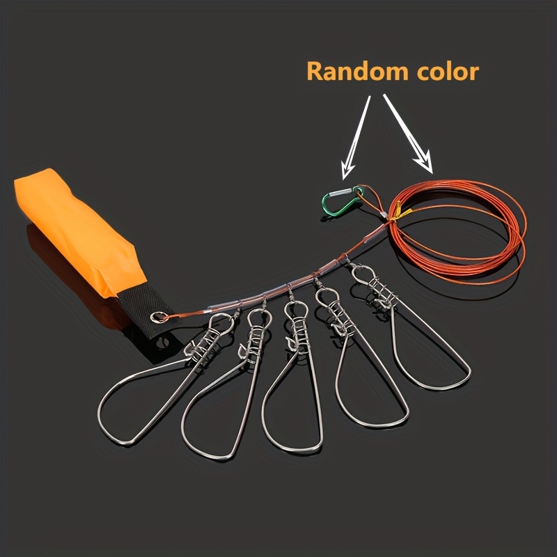 TEMU 1세트 5스냅 낚시 잠금 버클 태클 낚시 액세서리 3.5m 스테인리스 스틸 체인 스트링거 플로트 생선 미끼 잠금 다기능 클립 퀵릴리스 생선 보관 기어 박스 훅 아웃도어 태클 키퍼 정리기 낚시용