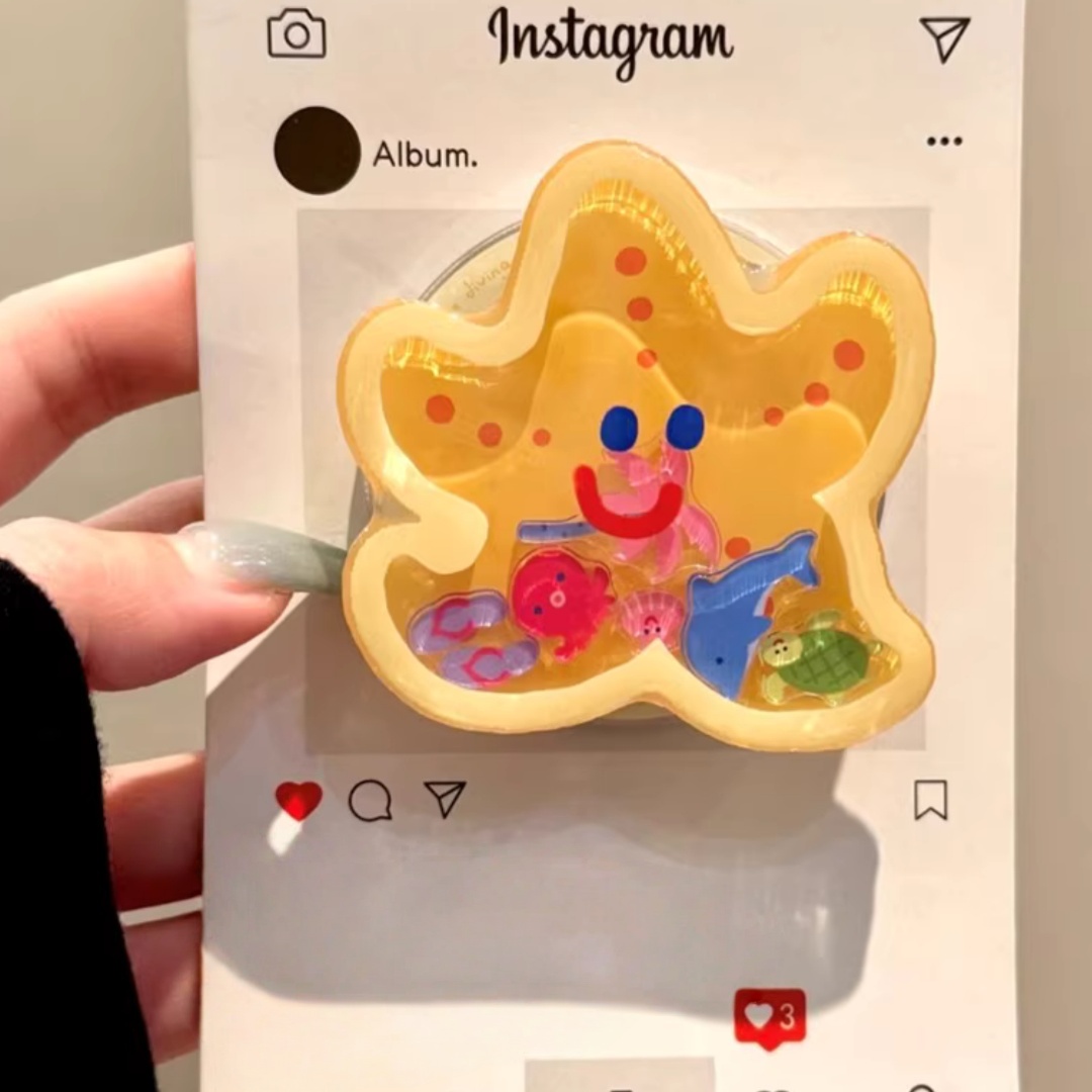 TEMU 노란 별 돌고래 스윙 음악 자석 거치대, 호환 강력 흡착 데스크탑 휴대폰 거치대