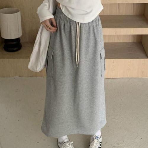 [에이치플러스몰]미디스커트 캐쥬얼스커트 30대 롱 주름 슬림 20대