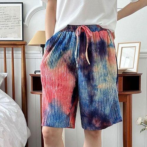 [에이치플러스몰]5부 골지 여자 캐주얼 물감 반바지 여름 주름 나염