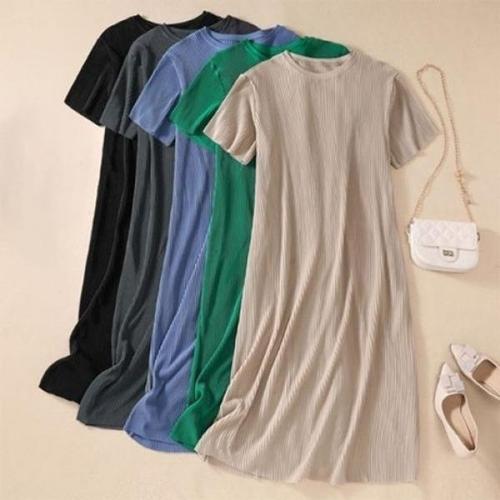[엄지척]여자원피스 1P 스타일 허리 주름 일상 고품질 반팔 원_19956761_667501