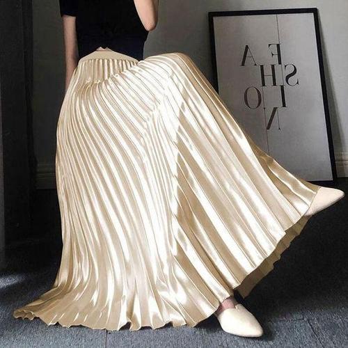 네모엔룩 여성용 핫픽스플리츠 허리밴딩 라인스톤 반짝이 주름 A라인 플리츠 롱 스커트 NL