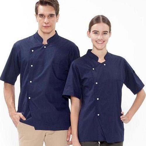 [에이치플러스몰]네이비 싱글스냅 반팔조리복 요리사옷 주방장 위생복