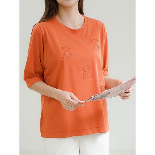 [드리다]엄마옷 여자 여름 곰돌이 핫픽스 빅사이즈 흰 화이트 스판 반팔 티셔츠 50-60대 중년여성 모임 ..