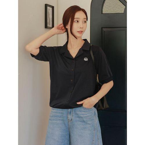 [드리다]여성 여름 카라 자수 빅사이즈 반팔 티셔츠 40-50대 미시 중년여성 엄마옷 캐주얼 등원 출근 모..