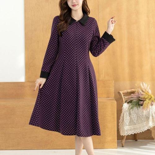 [드리다]여자 가을 겨울 카라 플리츠 A라인 빅사이즈 플레어 원피스 40-50대 미시 중년 엄마옷 하객 상견..