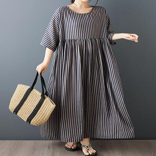 [쿠잉]스트라이프 빅사이즈 중년여성 롱 원피스/홈웨어