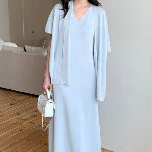 [디얼마미][디얼마미] 숄 니트 원피스 세트 /마담 미시 중년 여성 빅사이즈 40대 50대