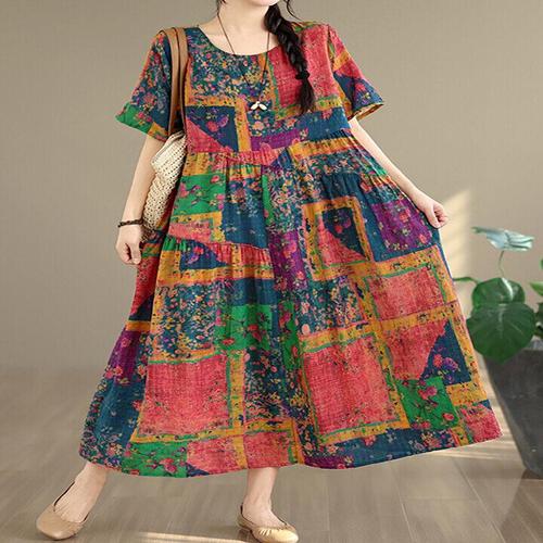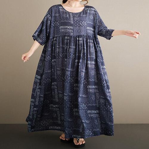 [쿠잉]페이즐리 플러스사이즈 데일리 중년여성 롱 원피스
