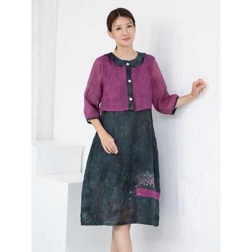 [모슬린]엄마옷 생활한복 라운드 인견 원피스 삼베자켓 세트 MQG127372 마담 미시 중년여성 빅사이즈 할..