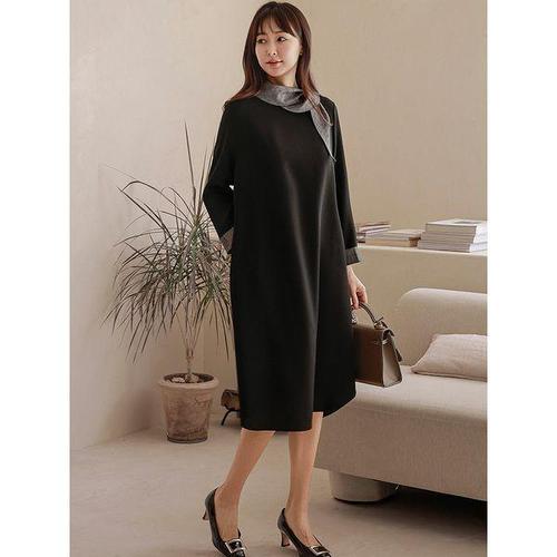 [애비뉴투지]엄마옷 콰트로 드레이프 터틀 여성 겨울 긴팔 아방가르드 롱 원피스 O01229 50대 60대 중년..
