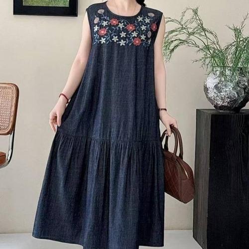 [애슬릿][애슬릿]민소매 롱 원피스 중년 여성 나시 데님 빅사이즈