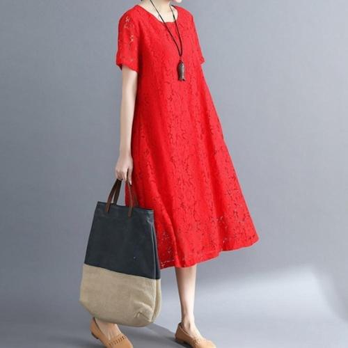 [오너클랜]인기상품 중년 여성 여름 반팔 루즈핏 레이스 반소매 롱 원피스 [WFLS1SQ_260124]