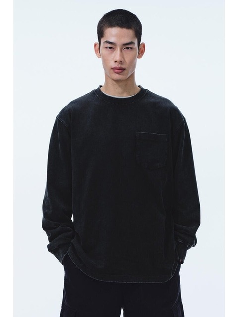 [에이치엔엠] 루즈핏 롱 슬리브 탑 블랙 1307967001