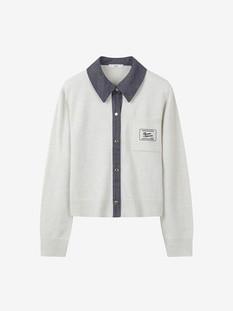 [주크] 데님 블록 니트 셔츠형 가디건 IV_Z254KSL016