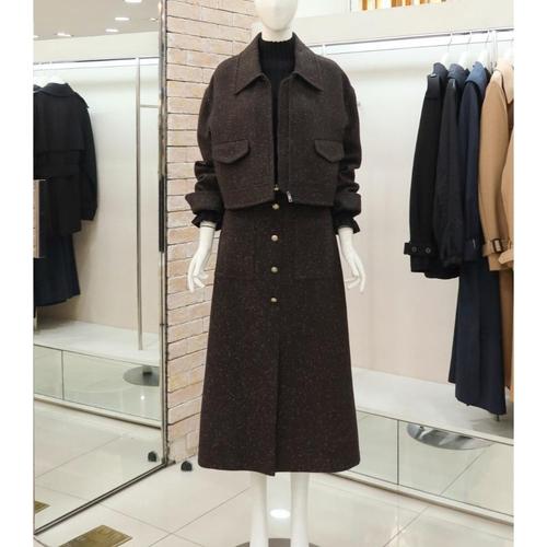 [JJ JIGOTT][JJ지고트]네크 배색 크롭 트위드 재킷 GNAA0JK14_DG