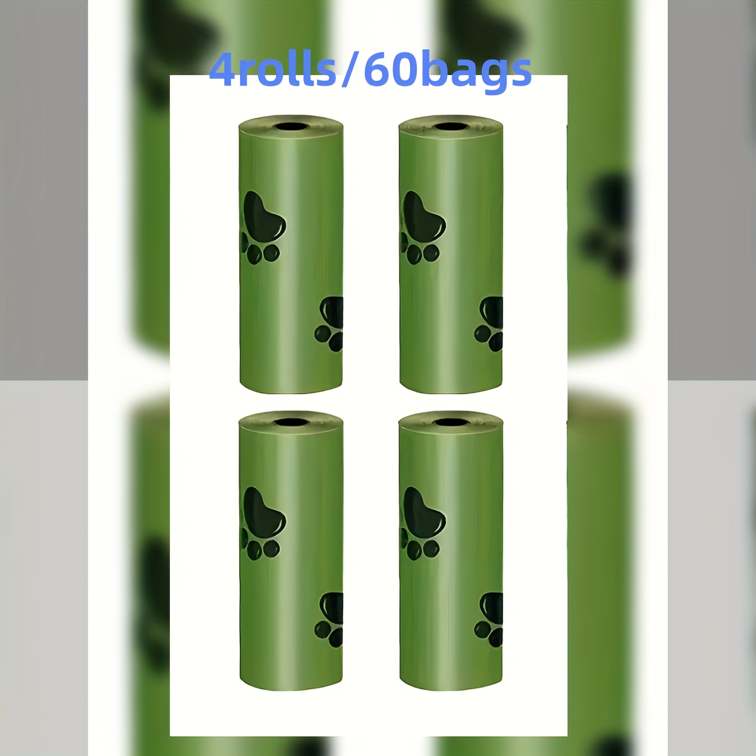 TEMU 60개/4롤 누수 방지 및 냄새 차단 애완동물 배변봉투, 두꺼운 폴리에틸렌 발자국 디자인, 쉬운 청소, 내구성 및 고품질, 강아지와 고양이 배변 처리에 적합