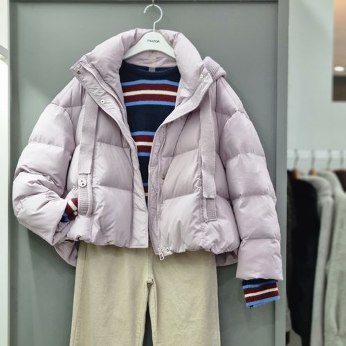 [무자크]니트 후드넥 포인트 덕다운 숏 패딩점퍼 MP9PD01