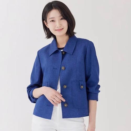 지센 여성 봄 린넨혼방 버튼업 라운드 자켓 LCJKP323