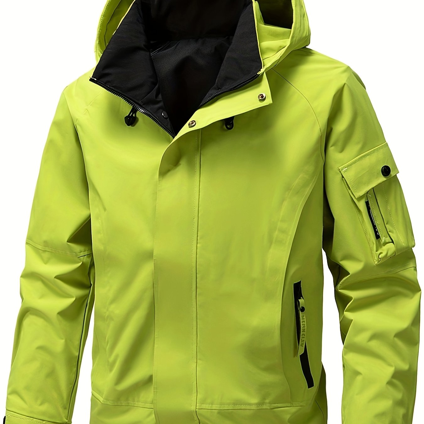 TEMU 남성용 방풍 보온 재킷 - 조절 가능한 후드 로프 & 지퍼 포켓이 있는 가벼운 방풍 코트, 하이킹, 등반, 여행용 밝은 노란색 아웃도어 방풍 재킷 - 봄/가을용 풀 지퍼 클로저 (신축성 없는 원단), 하이킹 장비