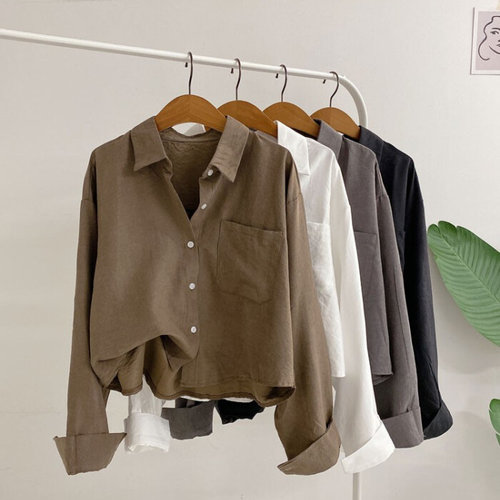 허니제이 / 케이셔 스웨이드 포켓 무지 세미크롭 셔츠(4color)