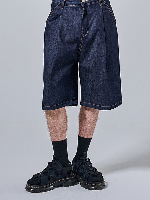 [아더피츠] 버뮤다 와이드 생지데님 반바지 (진청)