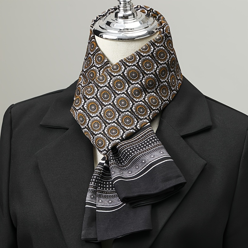 TEMU 남성용 우아한 실크처럼 사틴 스카프 - 럭셔리 드레스넥타이 대체품, 4가지 패턴 (브라운/블랙/화이트/그레이) - 정장 & 일상복으로 다양하게 활용, 비즈니스·웨딩·파티에 적합한