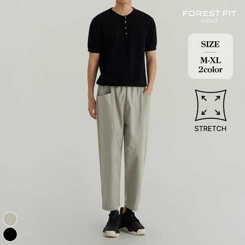 [모로엠] 남성 코튼 허리밴딩 배기핏 롤업팬츠 3색 ON-PTA-QWFMQVNC