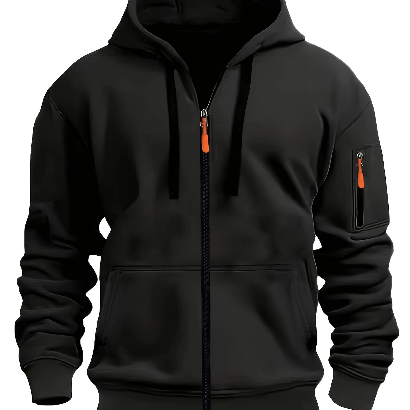 TEMU 남성용 단색 지퍼업 후드 스웨트셔츠, 긴 소매와 팔 주머니가 있는 가을/겨울 스포츠, 피트니스 및 캐주얼 착용