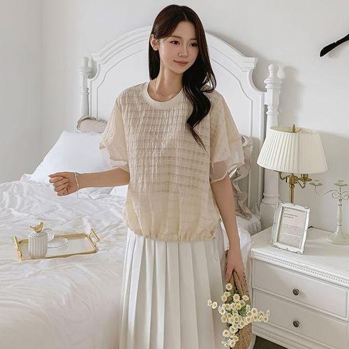 [옷자락]여성 지지미 박시핏 테잎 라운드 퍼프 여름 블라우스