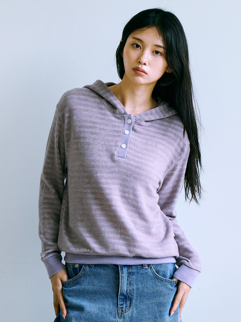 [키지코] ke302-스트라이프 니트 후드 퍼플