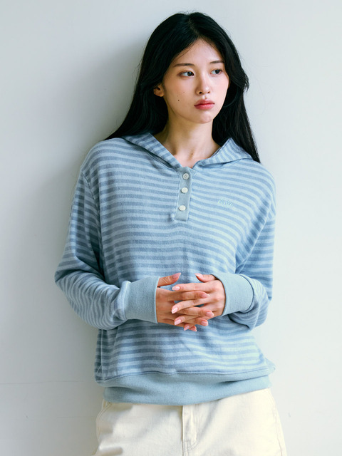[키지코] ke302-스트라이프 니트 후드 블루