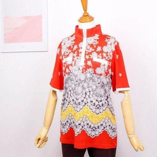 [에이치플러스몰]중년 여름 데일리 지퍼 여자 클래식 반팔 티셔츠 엄마