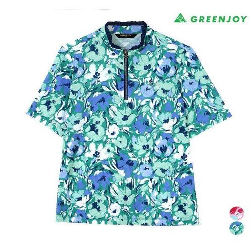 [그린조이]여성 프린트반팔 반지퍼 티셔츠