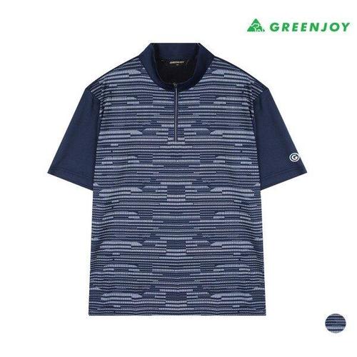 [그린조이]남성 프린트 배색 반팔 반지퍼 티셔츠