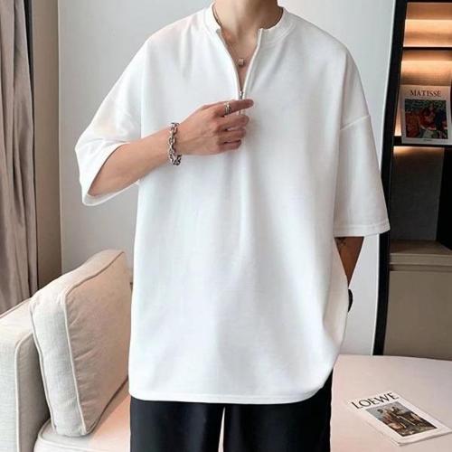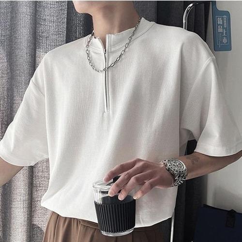 [셀러허브_여성트랜드패션]넥카라 남성 오버핏 티셔츠 차이나 지퍼 반집업 반팔 IS-TS15